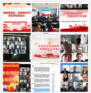 教工第一党支部全体党员共同观看了由学院自制视频《这里是中国》,并结合工作实际,介绍了开学准备的相关工作。教工第二党支部徐晨教授分享了防疫期间社区做志愿者的亲身经历,邓洪海博士分享了其妻子作为南通市疾控中心的工作人员参与疫情防控的感人事迹。其他教工党支部围绕疫情防控、线上教学准备与实施、线上教学经验分享等话题进行交流,并共同探讨了开学后拟采用的教学模式与工作计划,确保线上线下教学无缝对接。