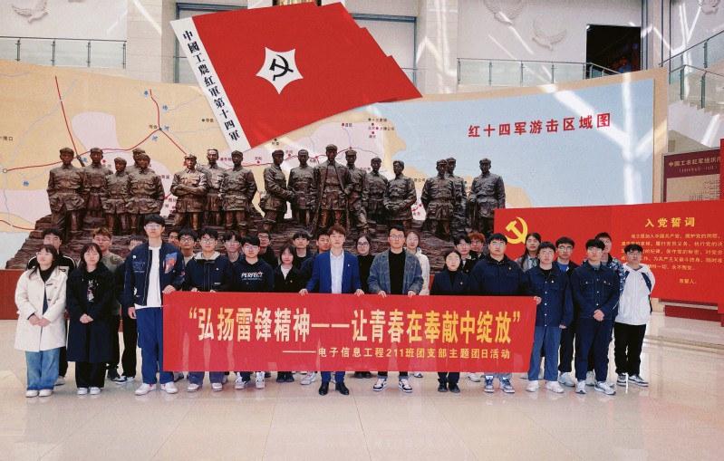 为追忆百年党史,缅怀革命先烈,用实践追寻革命精神,用行动厚植爱国情怀,3月15日,yl6809永利检测中心辅导员白志明、曹佳锋带领yl6809永利检测中心员工第三党支部和电子信息工程211团支部前往如皋市红十四军纪念馆开展主题党日活动和主题团日活动。