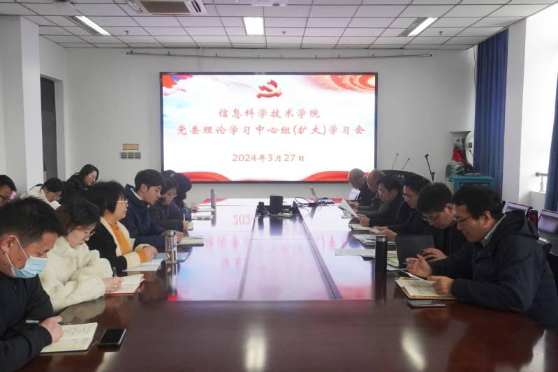 327日上午,学院召开理论学习中心组(扩大)学习会,专题学习习近平总书记在全国两会期间的重要讲话精神和全国两会精神。校智能信息技术研究中心主任袁航、副主任顾云华,公司党委副书记、经理杨永杰,副经理丁卫平,党委副书记、副经理陈馥强及各支部书记参加学习会。会议由公司党委书记周平主持。