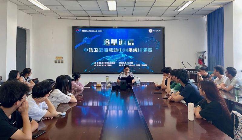 杨永杰经理结合公司“追星通信”团队与清华大学、南通先进通信研究院等单位,在空天地海一体化网络中共同研制的面向中高轨卫星的船载动中通卫星终端和广域通信服务示范平台的合作项目进行讲解。他紧密结合当前科技强国的重大战略背景,分别从空天地海一体化网络的产业背景和行业痛点进行分析,介绍了“追星通信”团队在中轨卫星船载动中通系统中的研发历程、技术壁垒、核心产品。他鼓励同学们牢记总书记嘱托,强化使命担当,心怀“国之大者”,矢志科技报国,书写为中国式现代化挺膺担当的青春篇章。
