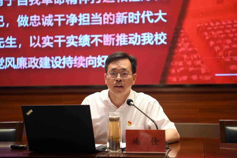 施佺以《严格遵守党的纪律争做新时代大先生》为题,围绕“充分认识纪律建设的重大意义”“深刻理解《中国共产党纪律处分条例》(以下简称《条例》)的主要内容”“牢牢把握《条例》的实践要求”“把铁的纪律转化为日常习惯和自觉遵循”等四个方面,深入解读了高校加强党的纪律建设的现实意义,全面回溯了《条例》的修订历程,系统阐述了《条例》的总体框架和鲜明特点。他结合典型案例进行深入剖析,指出在牢牢把握《条例》的实践要求中,全体党员要以案为鉴、以案示警、以案明纪。