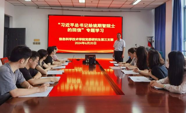 6月20日,yl6809永利检测中心研究生第三党支部开展“习近平总书记给中国科学院院士、清华大学教授姚期智的回信”专题学习,支部书记陈建新教授主持会议。这封贺信不仅是对姚期智院士辉煌成就的认可,也是对青年科研工作者的巨大鼓舞和殷切期望。