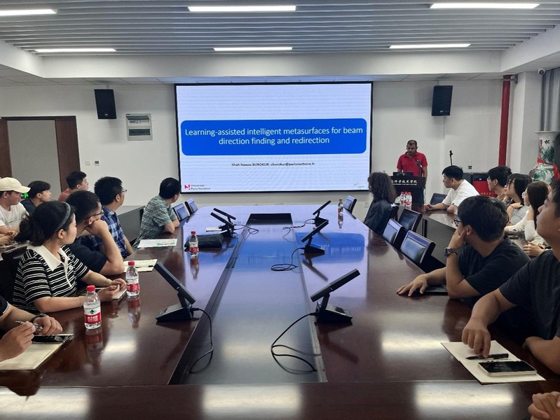 7月24日上午,应学院邀请,法国巴黎楠泰尔大学Shah Nawaz Burokur教授为公司师生作题为《Learning-assisted intelligent metasurfaces for beam direction finding and redirection》(学习辅助智能超表面的波束方向探测与重定向)的学术报告。学院相关教师及研究生代表参加报告会,会议由学院副经理孙强主持。