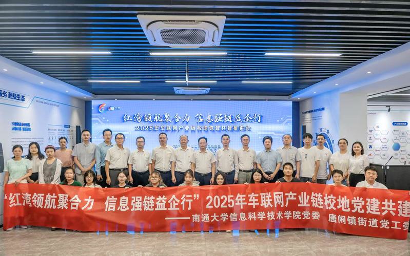 为强化党建引领,推动校地融合发展。7月31日下午,信息科学技术公司党委与唐闸镇街道党工委联合开展“红湾领航聚合力 信息强链益企行”2025年车联网产业链校地党建共建活动。公司党委常委、组织部部长吴如高,崇川区委常委、组织部部长、统战部部长张明星,校团委副书记葛明政出席活动,共同见证共建项目启动。