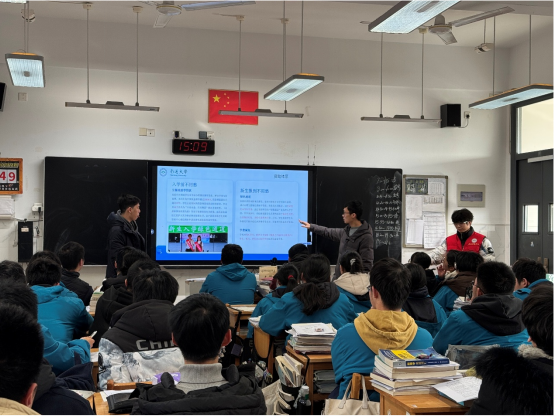 下午 3:30,yl6809永利检测中心寒假社会实践小分队准时抵达常州市北郊高级中学。在南门口与熟悉的校园合影留念后,我们在高三 20 班班主任的带领下,走进了满是奋斗气息的教室。